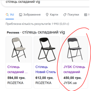 На цьому тендері було двоє учасників, інший ФОП пропонував стільці взагалі по 740 гривень. Але чиновники обрали «економічно найвигіднішу пропозицію», та придбали стільці зі знижкою 21% або 249 тис грн по відношенню до очікуваної ціни тендеру.
