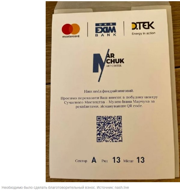 На выступление пришло много слушателей, которые рассчитывали, что вход будет бесплатным. Однако в афише мероприятия говорится, что каждый гость должен был сделать благотворительный взнос на реализацию проекта Центра современного искусства – музея Ивана Марчука.