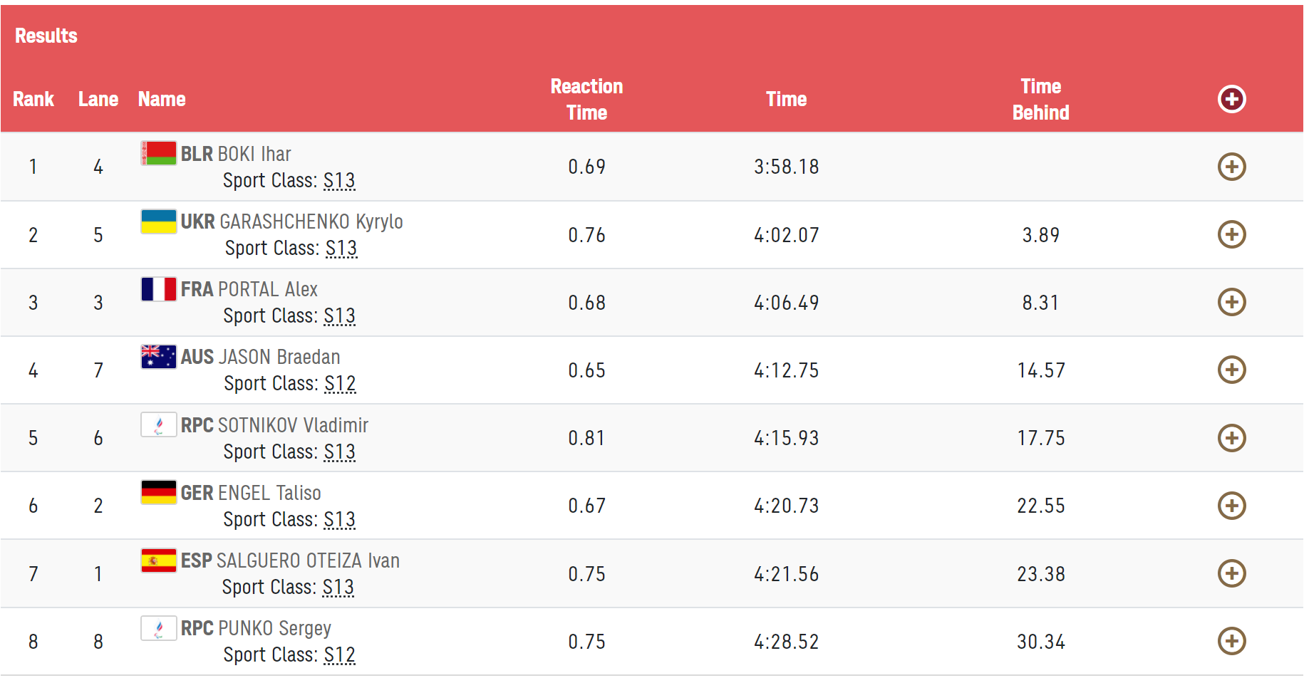 Трусов (2:29,99) вырвался вперед в начале заплыва на 200 метров комплексным стилем, но на последнем отрезке позволил обогнать себя израильтянину Марку Маляру (2:29,01), который, кроме того, побил мировой рекорд украинца Евгения Богодайко (2:30,72), установленный на ПИ-2016 в Рио-де-Жанейро. На третьей позиции финишировал колумбиец Карлос Даниэль Серрано Сарате (2:31,58).