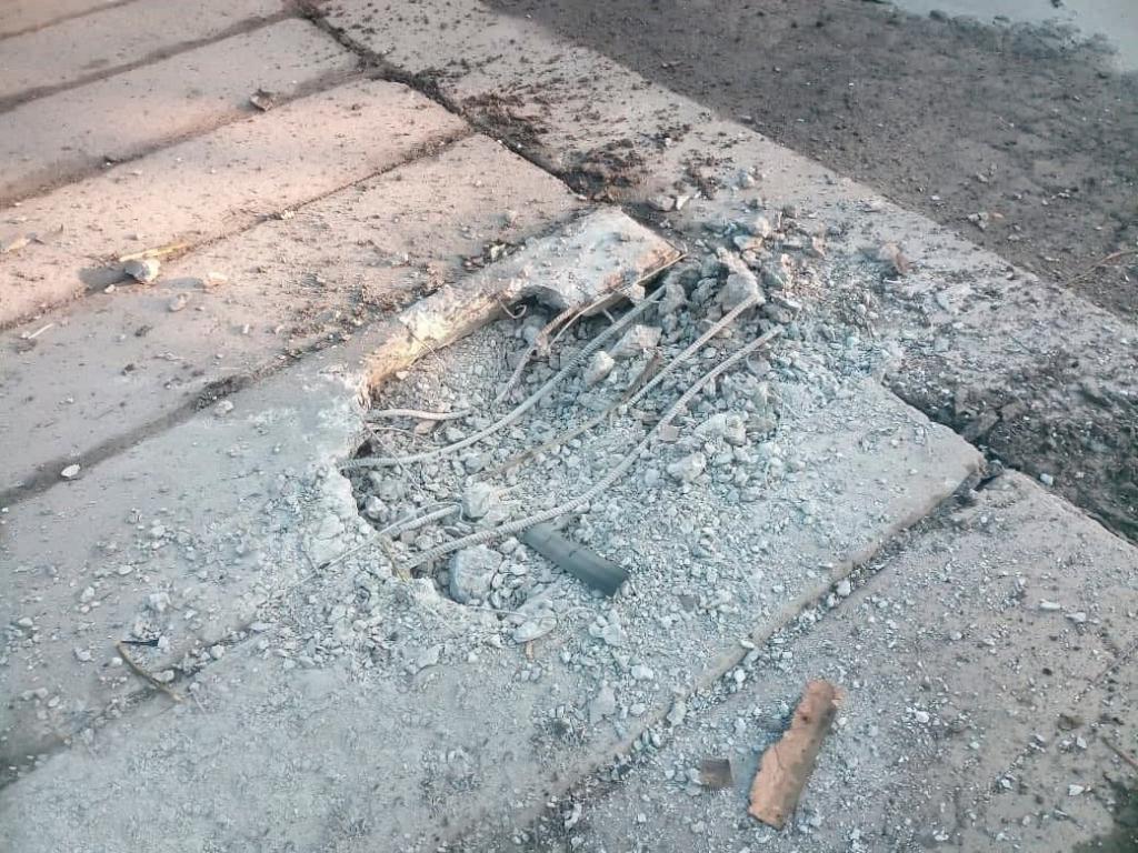 «Зафиксировано более 60 ударов по самой Авдеевке. Боевики применяли минометы 120 мм и гаубицы 122 мм (следы от попаданий на бетоне на фото). Из-за обстрелов ранения получил один военный» — рассказывает автор публикации.