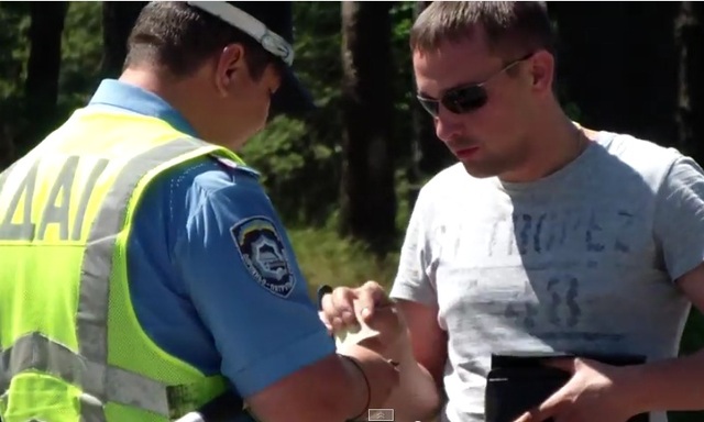 Конвейер взяток общественник зафиксировал еще 17 июня после 20 минут сидения в засаде напротив патрульной машины ГАИ. На видеозаписи видно, как водители кладут деньги в свои документы, которые после этого передают правоохранителям, а те, в свою очередь, возвращают им их уже без купюр. Сумма взяток составляла от 100 до 200 гривен.