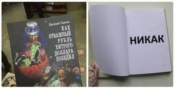 Что интересно, эта простая мысль о формировании курса доллара остаётся для поклонников СССР совершенно недоступной. Доллар обладает для них каким-то магнетическим, я бы даже сказал сакральным значением — превзойти который нужно во что бы то ни стало. Апофеозом этой глупости стала изданная в 2014 году книжка «Как отважный рубль хитрого доллара победил» — в которой фанаты СССР компенсировали свои моральные травмы, подтерлись долларами и доверху наелись самым вкусным в мире мороженым.