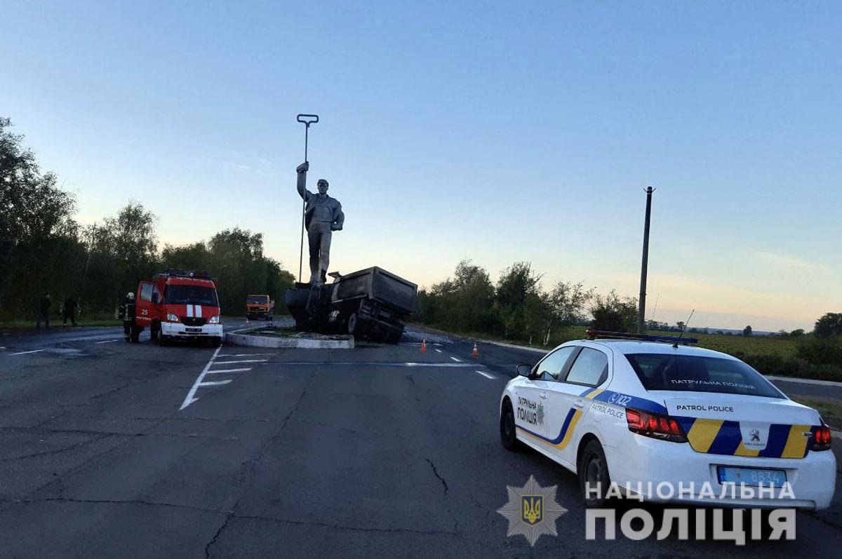 Автомобиль SCANIA со шлаком двигался со стороны Волновахи в Мариуполь. 30-летний водитель не справился с управлением, съехал с дороги и врезался в монумент. От сильного удара машина загорелась. Водитель, житель села Малоянисоль Никольского района, погиб на месте происшествия.
