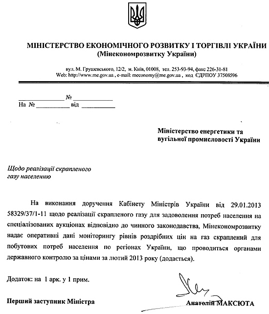 Тим не менш, відповідно до наказу Мінекономрозвитку, виданого влітку 2012 року, навіть було визначено перелік торговельних майданчиків. До їх складу увійшли чотири біржі: Українська енергетична біржа, Українська універсальна біржа, "Катеринославська" та товарна біржа "Іннекс".