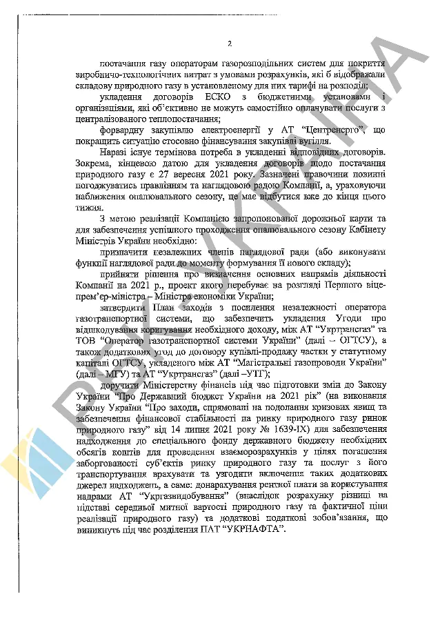 "С целью реализации Компанией предложенной дорожной карты и для обеспечения успешного прохождения отопительного сезона Кабинета министров Украины необходимо: назначить независимых членов наблюдательного совета (или выполнять функции наблюдательного совета до момента формирования его нового состава)", - говорится в письме.