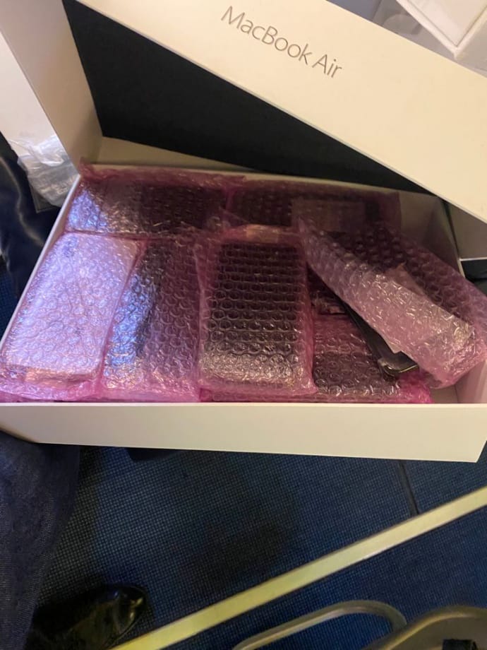По результатам осмотра самолета, прибывшего в аэропорт Борисполь с Дубай, обнаружили 85 девайсов марки Apple. Среди них: iPhone 12 Pro Max, iPhone XS, iPhone XR, One Plus Nord, MacBook Pro.