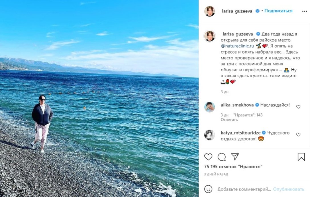 Про стрес Лариса Гузєєва повідомила в Instagram три дні тому.