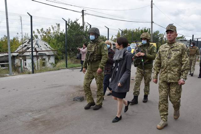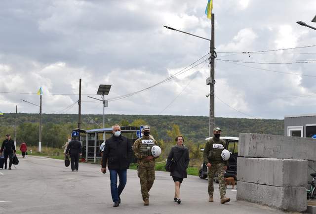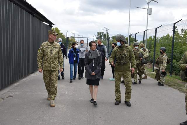 Байер посетила пункт въезда-выезда "Станица Луганская". Дипломата сопровождал помощник Командующего ОС Владимир Оленчук.
