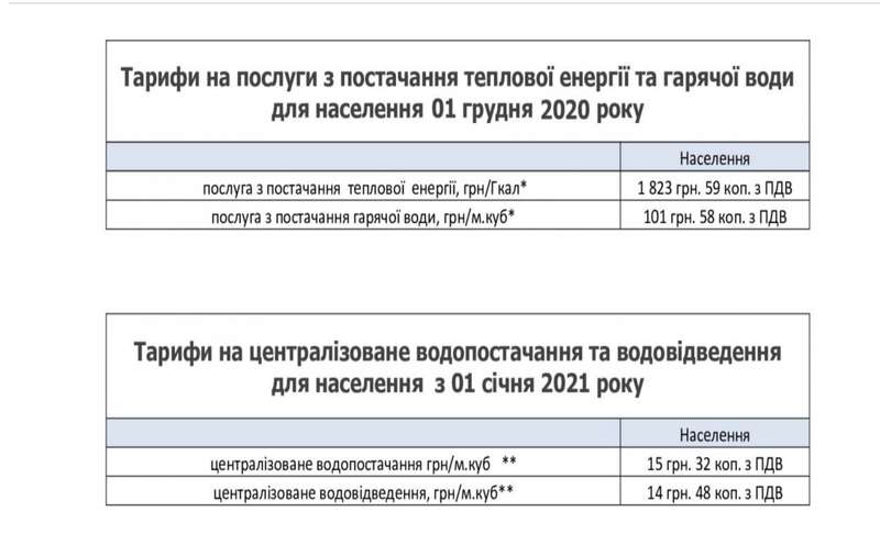 В утвержденном сегодня проекте решения указаны все тарифы, которые будут подняты. Тарифы на нужды населения отныне равняются: 2 256,23 гривен за Гкал тепловой энергии и 125,88 гривен за м3 горячей воды. Для бюджетных учреждений: 3 925,91 гривен за Гкал тепловой энергии, и 195,38 гривен за м3 горячей воды. Другие пользователи будут платить по 3 962,16 гривен за Гкал тепла и по 202,79 гривен за м3 горячей воды. У религиозных организаций тариф составляет 3 834,89 гривен за Гкал тепловой энергии.