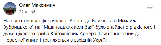 Фотографиями находки в среду, 29 сентября, поделился местный житель Олег Максимич в Facebook-сообществе "Моя Старосамбірщина". Он рассказал: гриб нашли на территории эко-лагеря "Мшанецкие хижины" во время подготовки к фестивалю.