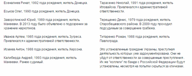 Руководитель ГУ МВД Украины Вячеслав Аброськин выложил в сети фото и список банды террориста "Гиви" - "Сомали".