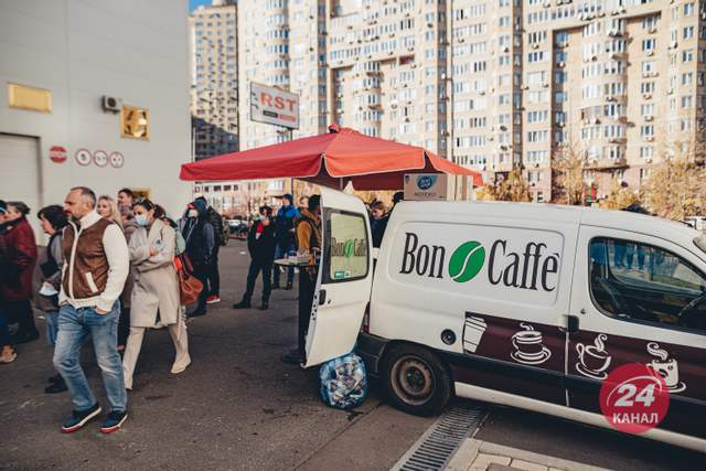 В общем желающих получить прививку – сотни. Чтобы получить возможность вакцинироваться, придется ждать достаточно долго. Поэтому перед входом в выставочный центр даже поставили мобильное кафе. Есть две очереди: "живая" и по записи (намного меньше).