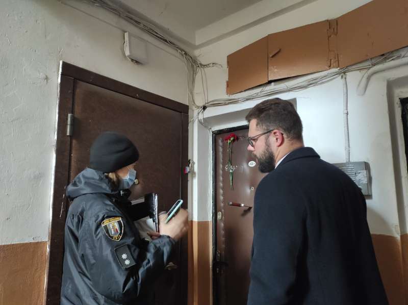 Неизвестные сегодня ночью, 15 ноября, воткнули нож в дверь квартиры Дмитрия Перова, юриста "Карты реновации" и члена партии "Народовластие", защищающего исторические памятники Киева от сноса и застройки. Также клейкой лентой были приклеены две гвоздики.