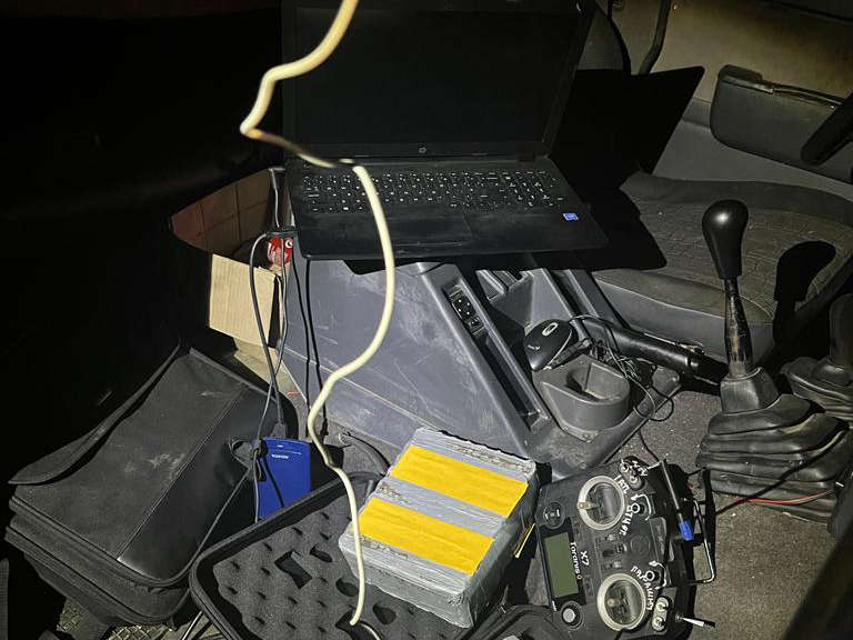Вблизи автомобиля стояли развернутая антенна, пусковая катапульта, самодельный беспилотник.