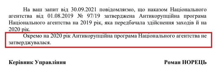 Тож за словами Олександра Новікова, цьогоріч було заплановано більше 20 перевірок щодо наявності антикорупційних програм у виконавчих органах влади. А що ж з програмою в самому НАЗК?