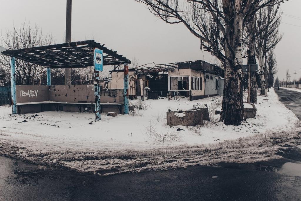 Очевидцы опубликовали фото, на которых видны пустынные улицы, разрушенные дома, немного присыпанные снегом. До начала боевых действий весной 2014 года в данном районе кипела жизнь и цены на недвижимость были довольно высокими, сейчас же там практически не осталось целых домов.