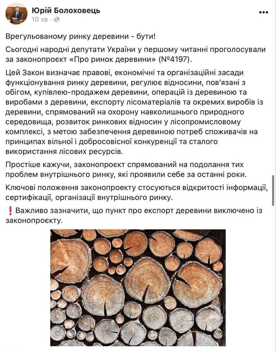 А нічого дивного немає, адже у законопроекті міститься пункт 8 прикінцевих положень, яким повністю скасовується Закон про мораторій на експорт лісу-кругляку!