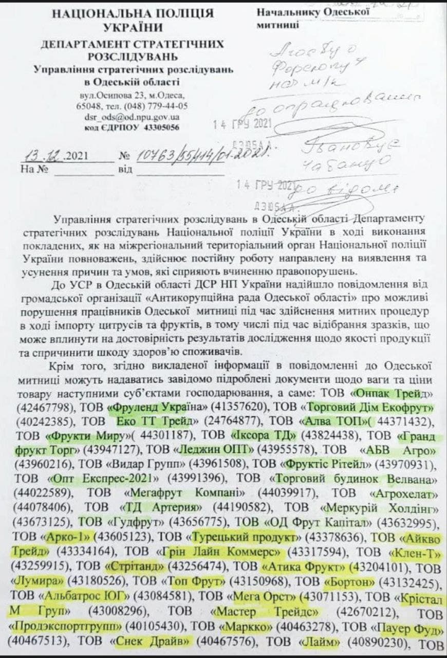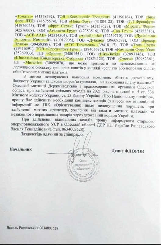 И вот касательно этой ситуации, несколько дней назад, Департамент стратегических расследований МВД направил на Одесскую таможню письмо, указав там список основных компаний «Лампочик», и задав вопрос, подтверждающий мой пост.