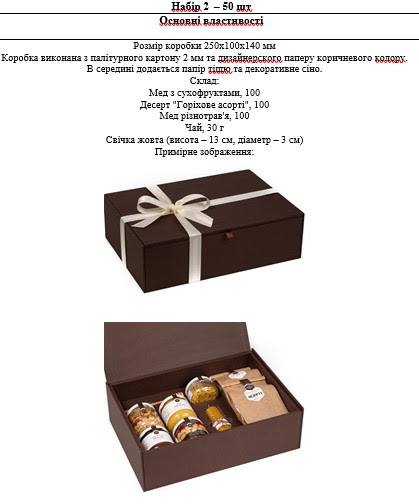 Розпочнемо з подарунків. Наприклад, Міністерство аграрної політики та продовольства до Нового року вирішило закупити подарунків на 100 000 гривень 93 набори.