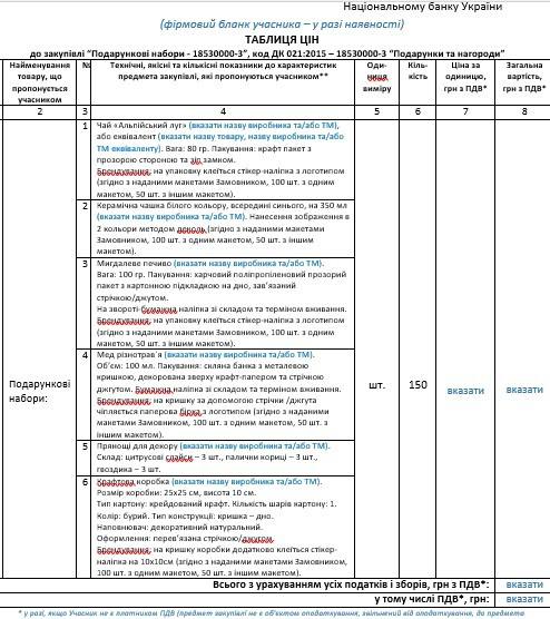 Перемогла у гонитві за наданням подарунків НБУ – ТОВ “Рекламно-сувенірна компанія “Юніверсал”. І ціну дала більшу, ніж її конкуренти. А що, Новий рік же!?