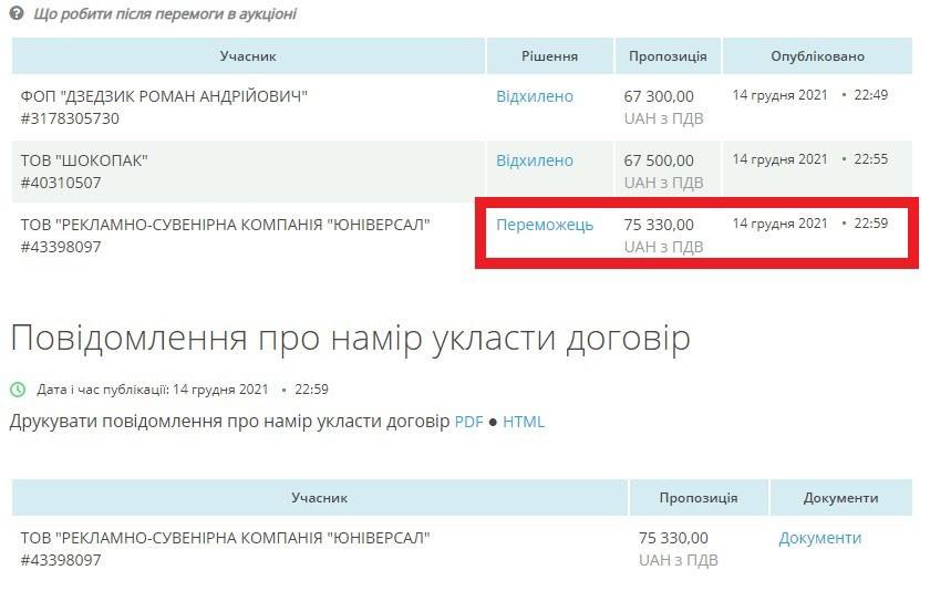 Більше 75 тисяч за подарункові набори. Схоже, ТОВ “Рекламно-сувенірна компанія “Юніверсал” увірвала куш під Новий рік. Адже інші тендери, в яких вона брала участь – мали не такі солідні цифри. Але з цим радимо розібратися відповідним органам. Можливо, вже у новому році.