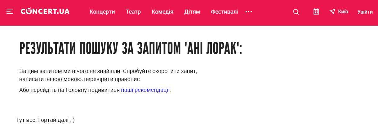 В то же время на сайтах Сoncert.ua и Рarter.ua даже нет анонса концертов Ани Лорак.