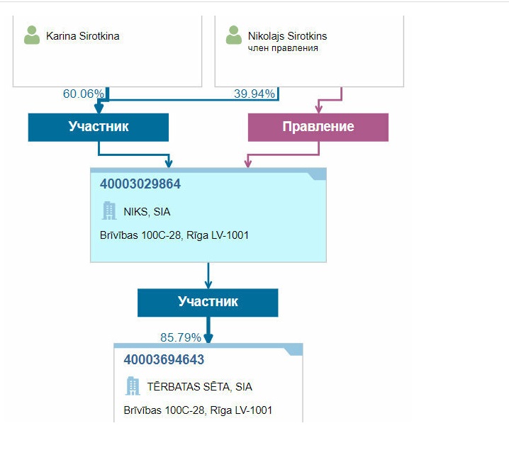 Это что касается Украины и «лужниковских». Но есть еще Латвия и другая российская ОПГ – Тамбовская. К ней тоже причастен Борис Баум. Связь прослеживается следующим образом. Борис Баум женат на некоей Карине Сироткиной (Karina Sirotkina).