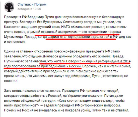 Критическая масса россиян радуется оккупации Казахстана, поддерживает действия правительства и выражает поддержку кровавым расправам над казахами. Критическая масса россиян рассматривает оккупацию Казахстана, как возможность улучшить свое материальное положение за счет разграбления «аулов» и национализации казахских предприятий. Критическая масса россиян выражает надежду, что после Казахстана РФ продолжит оккупацию Украины, связывая свою агрессию исключительно с позицией «в Украине красивые и чистые города, хорошее жилье, вкусные продукты», которые россияне готовы забрать себе.