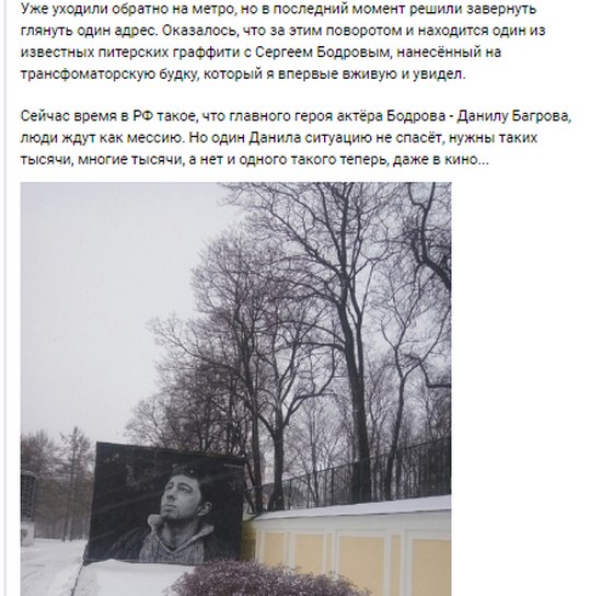 При этом большинство россиян считает (цитата): «Сейчас время в РФ такое, что главного героя актера Бодрова — Данилу Багрова, люди ждут, как мессию. Но один Данила ситуацию не спасет, нужны таких тысячи, многие тысячи, а нет и одного такого теперь, даже в кино».