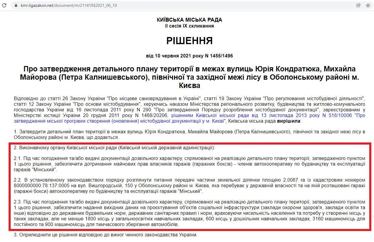 3) При видачі будь-яких документів, направлених на реалізацію ДПТ, у КМДА прописати вимогу 1800 місць у школах, 600 місць у ДНЗ, 3160 машиномісць для постійного та 900 машиномісць для тимчасового зберігання автомобілів (це без знесення кооперативу, зрозуміло).