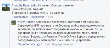 Після появи публікації на УП в коментарі під на ФБ нашої сторінки Писаренко висловився з приводу ділянки: