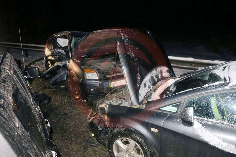 В Святошинском районе Киева в ночь на 23 января на Новоирпинской трассе произошло ДТП с участием Ford Fusion, Jeep Patriot и Seat Leon.