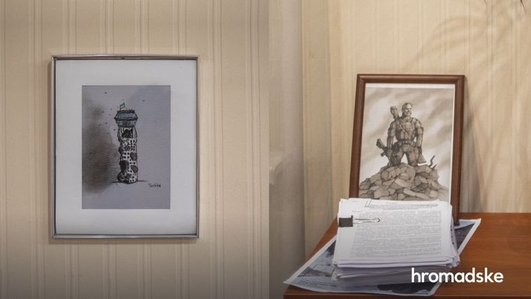 «Некоторые спрашивают: это ваша мама? Это мама погибшего в АТО. Такой проект делало “Зеркало недели”. Они всем депутатам и чиновникам разослали портреты матерей. И вот я повесил его в августе 2019-го, и с тех пор он здесь. Еще в двух кабинетах видел такие», — объясняет Грищук. И рассказывает свою историю о том, как прокурор стал киборгом.