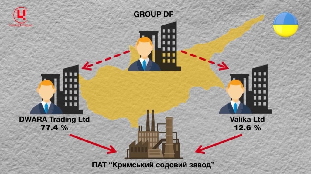 Компания Ostchem Germany GmbH из обоймы Group DF контролировала ПАО «Крымский содовый завод» до июля 2011 года, в дальнейшем в структуре собственности произошли изменения. Акции поделили между двумя кипрскими компаниями: Dwara Trading Ltd получила 77,4% акций общества, Valika Ltd – 12,6%. Конечным бенефициаром общества остался Дмитрий Фирташ, поэтому кипрские компании тоже его.