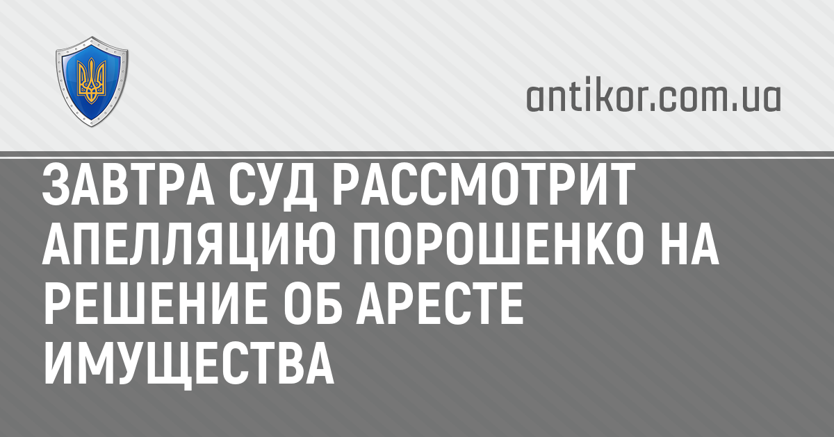 Завтра суд рассмотрит апелляцию Порошенко на решение об аресте имущества