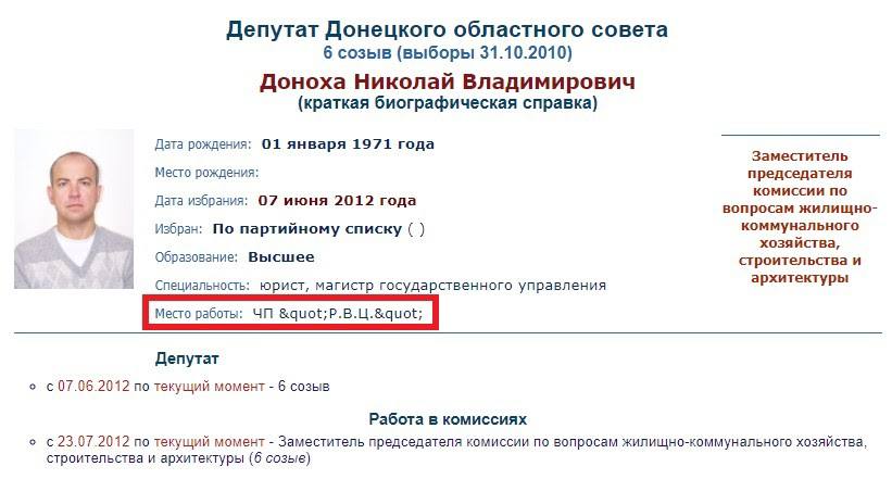 Микола Доноха – колишній депутат Донецької обласної ради, член “Партії регіонів”. Аліна Доноха, одна із засновниць приватного підприємства, ймовірно, його близька родичка.