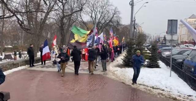Участники вышли с флагами своих стран. Идя, выкрикивали "Слава Украине! – Героям Слава!".