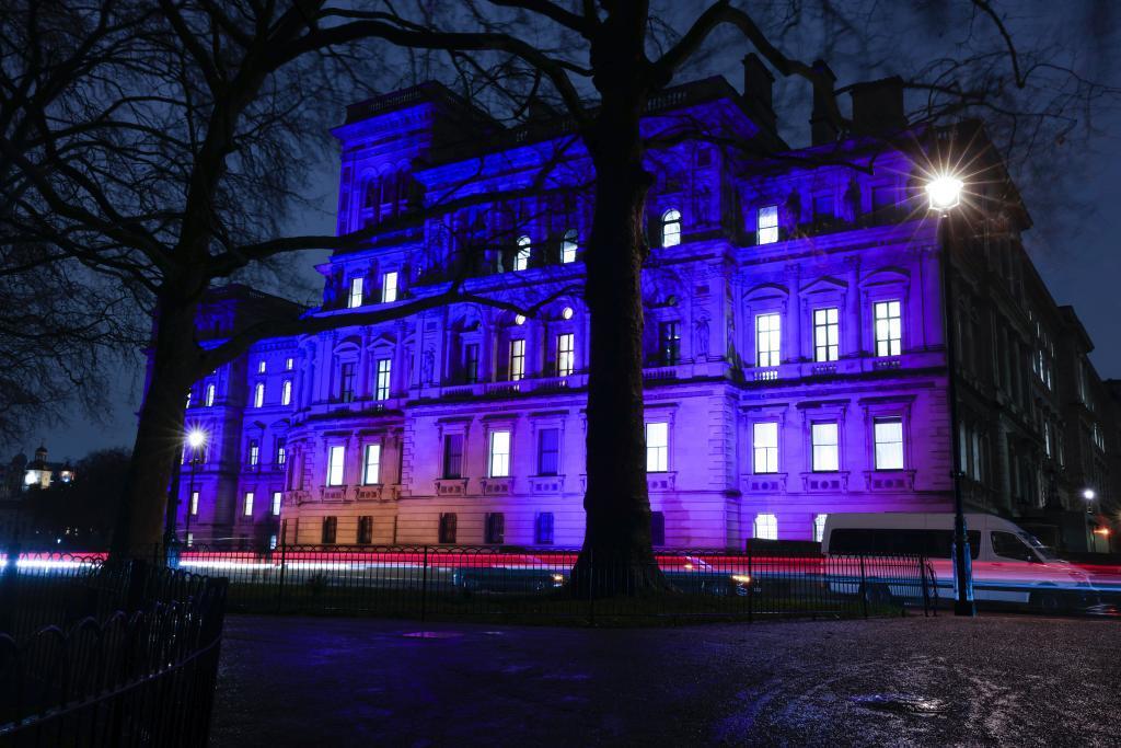 Здание МИД Британии и президентский дворец в Словакии подсветили цветами украинского флага