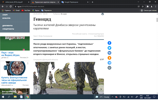 Так, 25.09. 2014 року "Росийская газета" публікує статтю із назвою "Геноцид. Тисячі жтелів Донбасу по-звірячому знищені карателями".