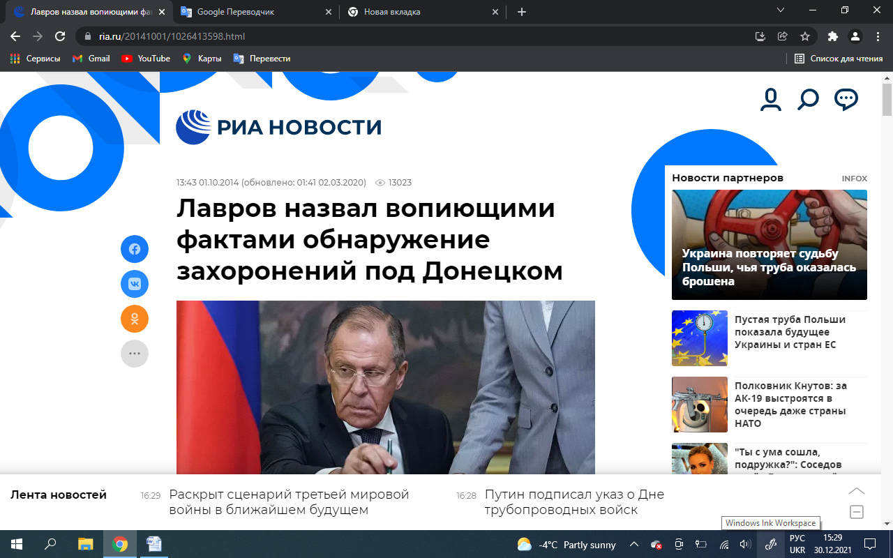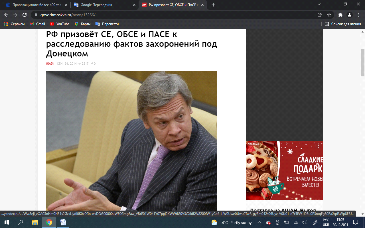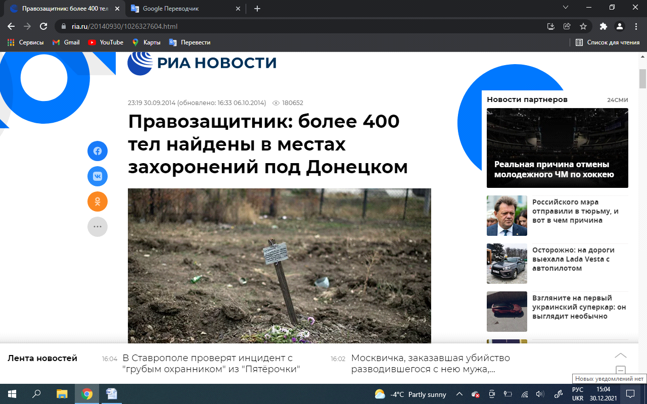 А вже на наступний день на сайті Слідчого комітету Росії з"явилося повідомлення, що слідчі порушили кримінальну справу щодо виявлення "масових поховань мирних жителів на території Донбасу".