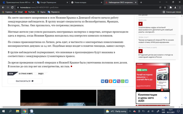 У статті йдеться про те, що 23 вересня 2014 року  учасники НЗФ, виявили поховання у районі шахти №22 "Комунар" під Донецьком. За інформацією видання, після обстеження одного з них судмедексперти дійшли висновку, що людей у ньому було вбито пострілами в голову зблизька.