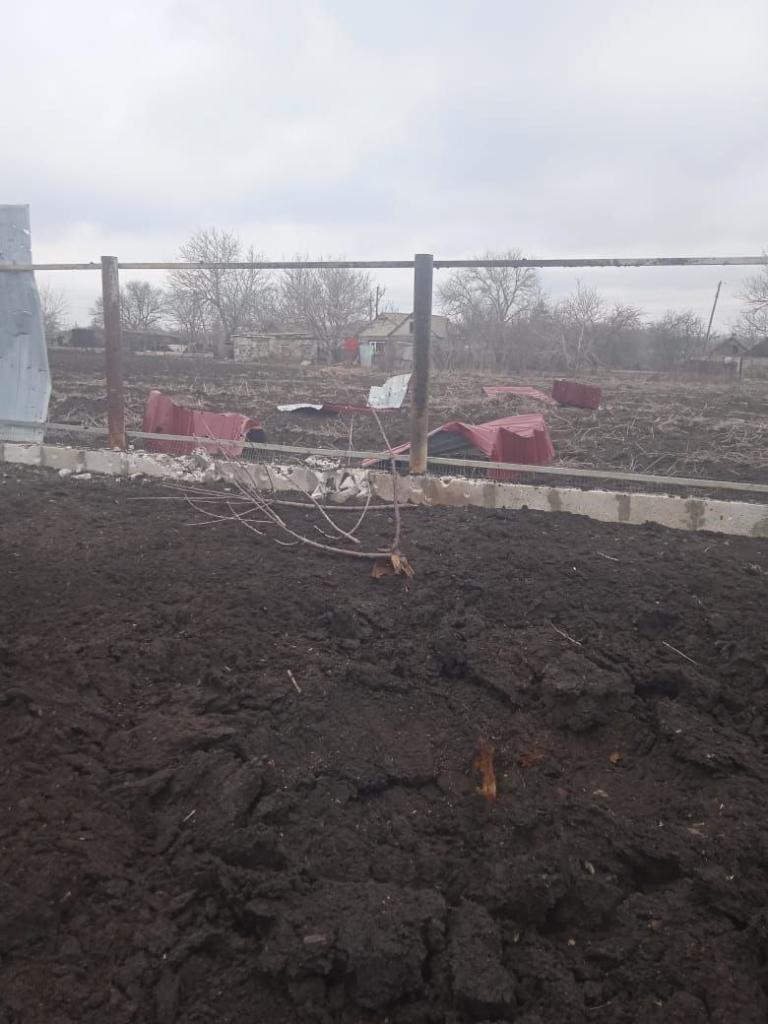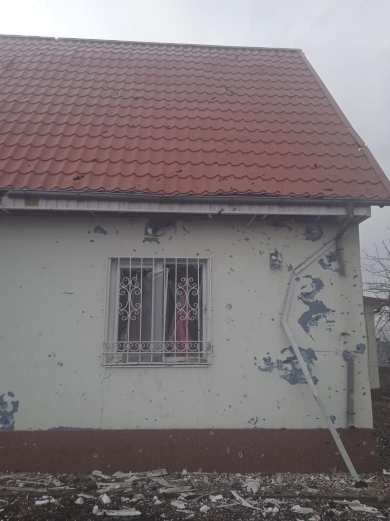 В частности, по улице Молодежной, 3, зафиксировано повреждение фасада дома, 8 воронок от снаряда 122 мм, мин 82 мм, также разрушена ограда, повреждена крыша дома. В селе повреждены линии электроснабжения.
