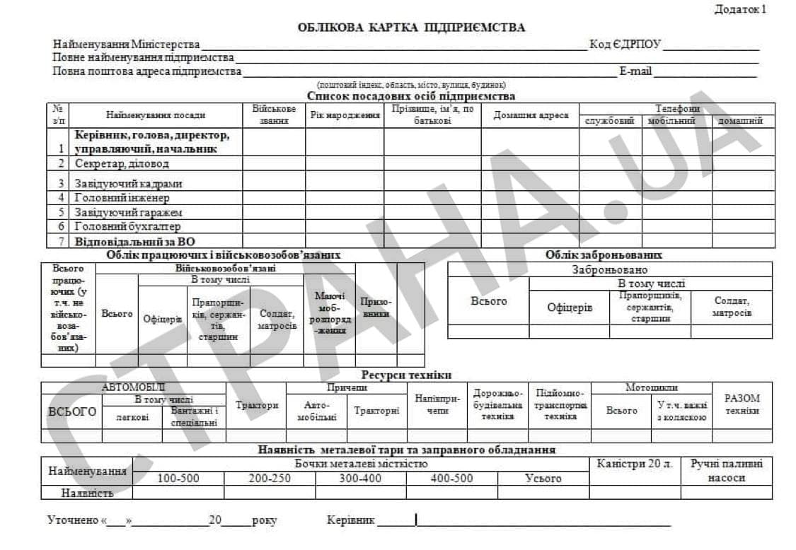 Руководители украинских предприятий получили письма из военкоматов с бланками учета военнообязанных.