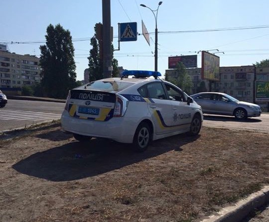 В Киеве автомобиль полицейских засекли на газоне