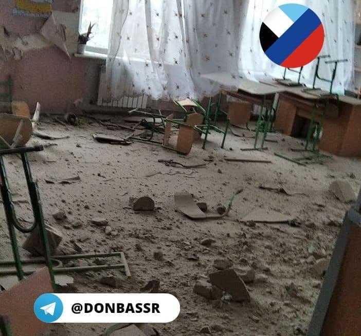 Школа № 4 во временно неподконтрольном украинскому правительству Докучаевске (Донецкая область) попала под обстрел.