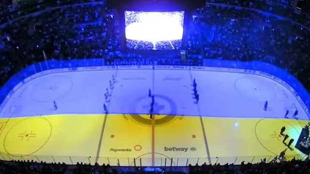 Так, один из сегодняшних матчей НХЛ между Виннипегом и Монреалем начался с гимна Украины перед стартом. Его исполнил мужской народный хор "Hoosli". Множество болельщиков либо махали сине-желтыми флажками, либо облачились в нашу форму.