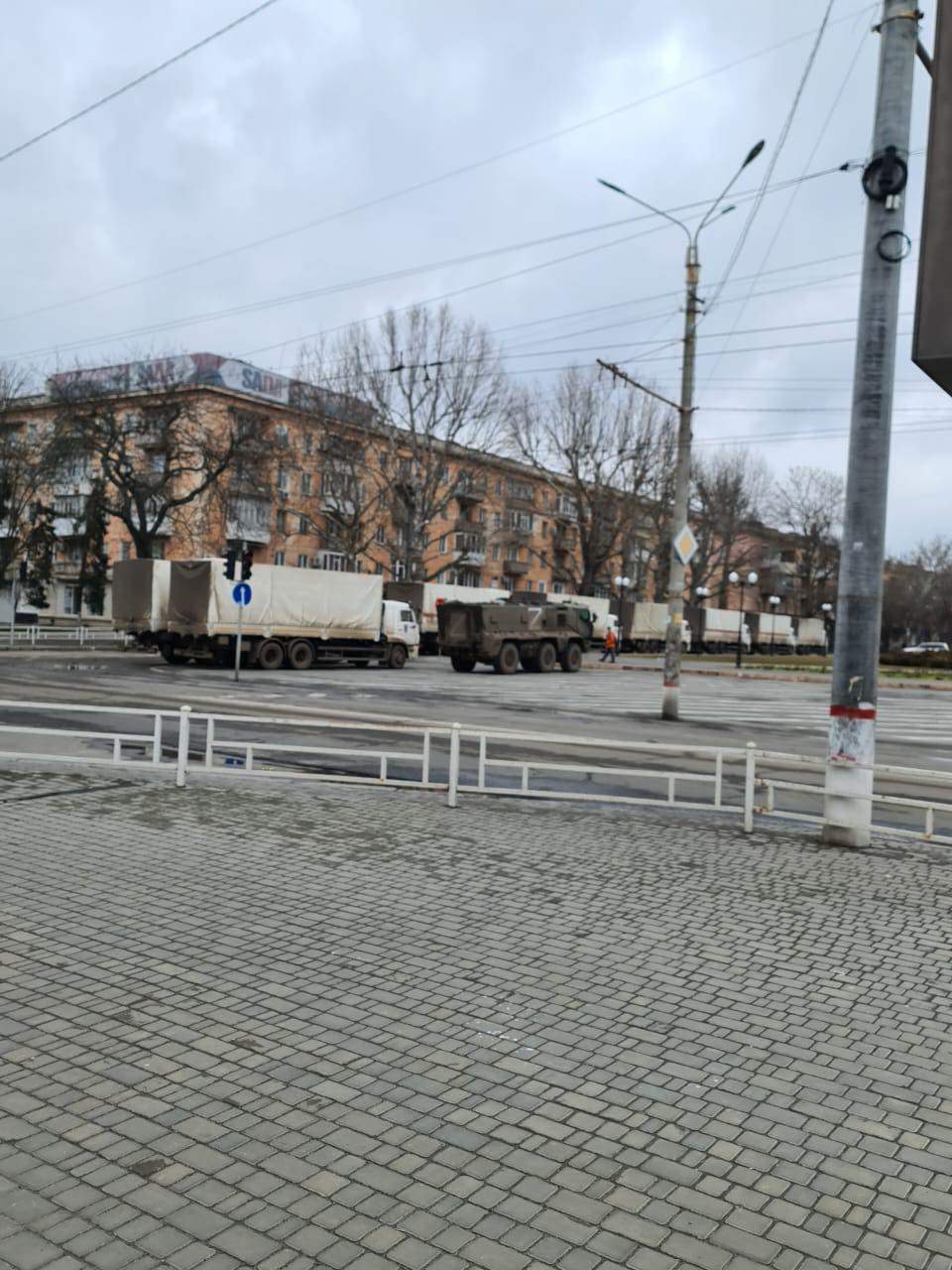 На улицах города были замечены колонны грузовиков из России. По замыслу Кремля внутри должна быть гуманитарная помощь.
