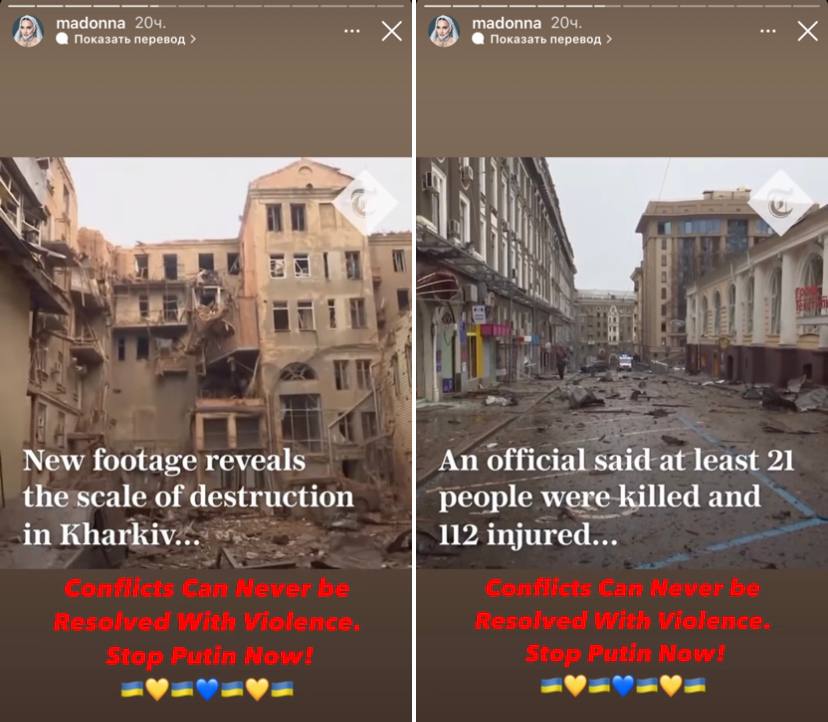 Мадонна, которая ранее уже озвучила свою позицию и выступила в поддержку украинского народа, снова обратилась к миру с просьбой остановить Путина.