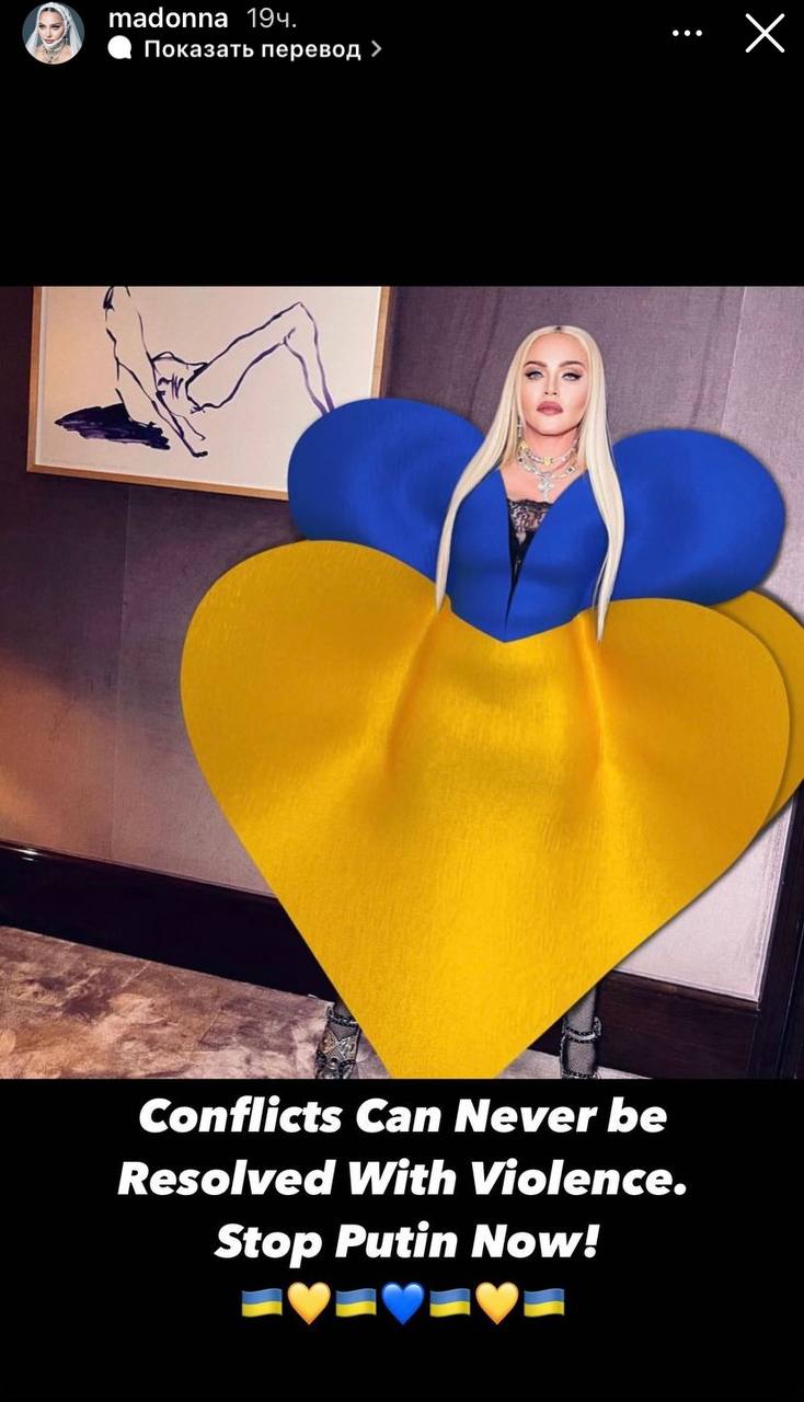 Конфликты никогда не разрешаются насилием. Остановите Путина сейчас! – обратилась к фолловерам Мадонна.