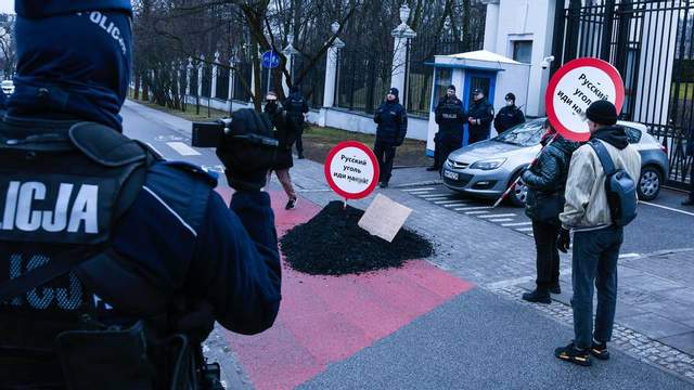 "Русский уголь, иди на**й": поляки устроили протест под посольством России в Варшаве